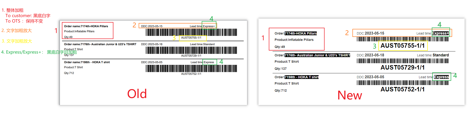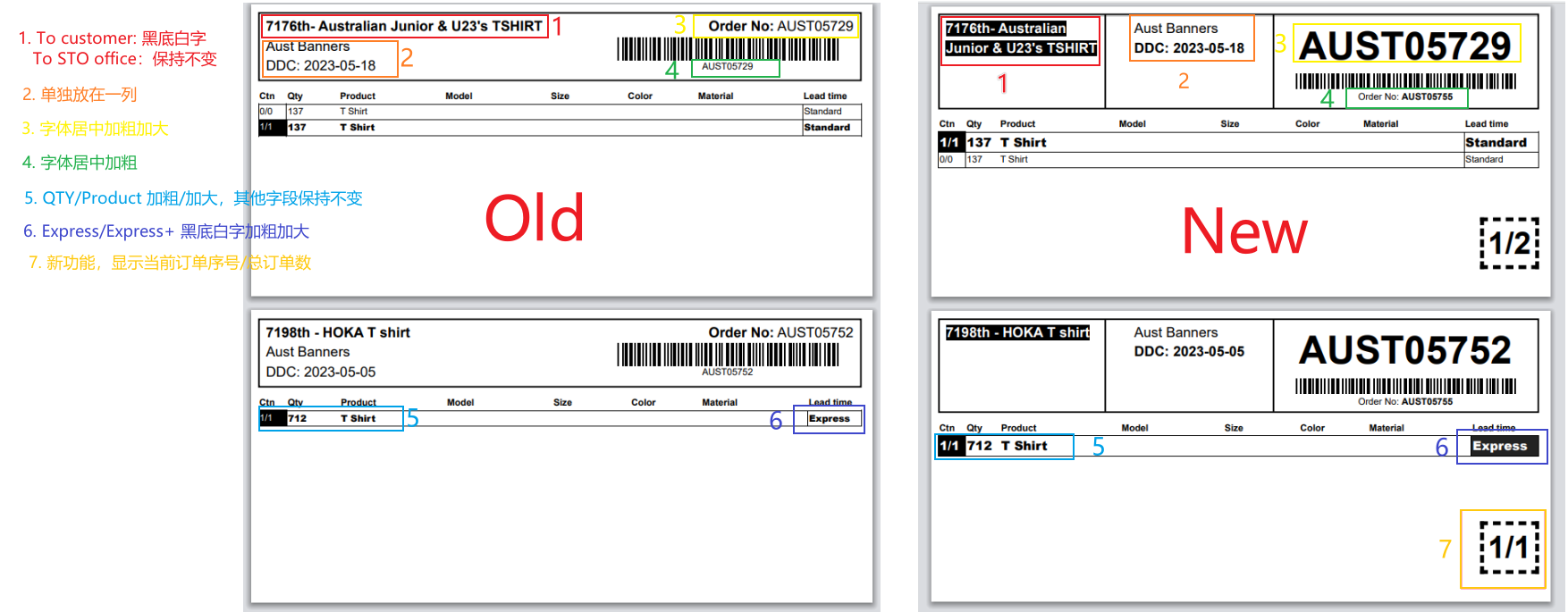 - If delivery to customer, Order Nmae becomes white on black. No change is required for delivery to STO.